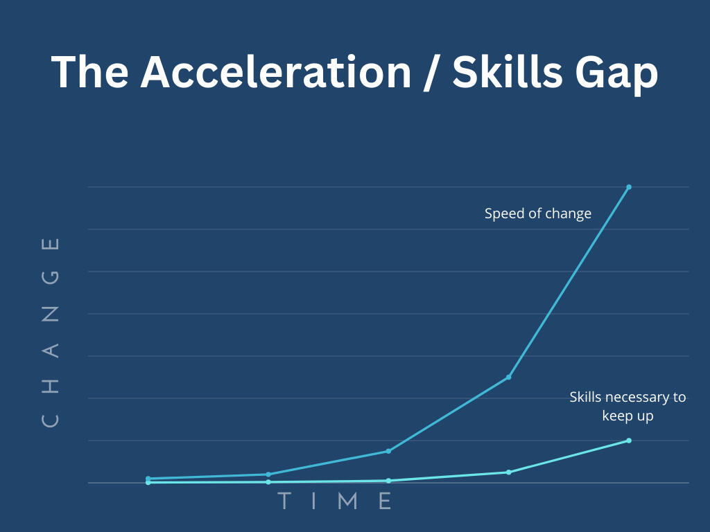 Put all of these trends into context by thinking about the sheer acceleration of the biggest trend in our lives today – AI. Lost in the numbers above is the fact that in the span of just a few years, AI models scaled rapidly from 175 billion parameters (GPT-3) to current sophisticated models now surpassing 170 trillion parameters.(This is a 1,000-fold jump in complexity.) If you aren’t saying whoah, you’re doing it all wrong!What’ the impact? It’s what it does to your career and the industry you work within:f