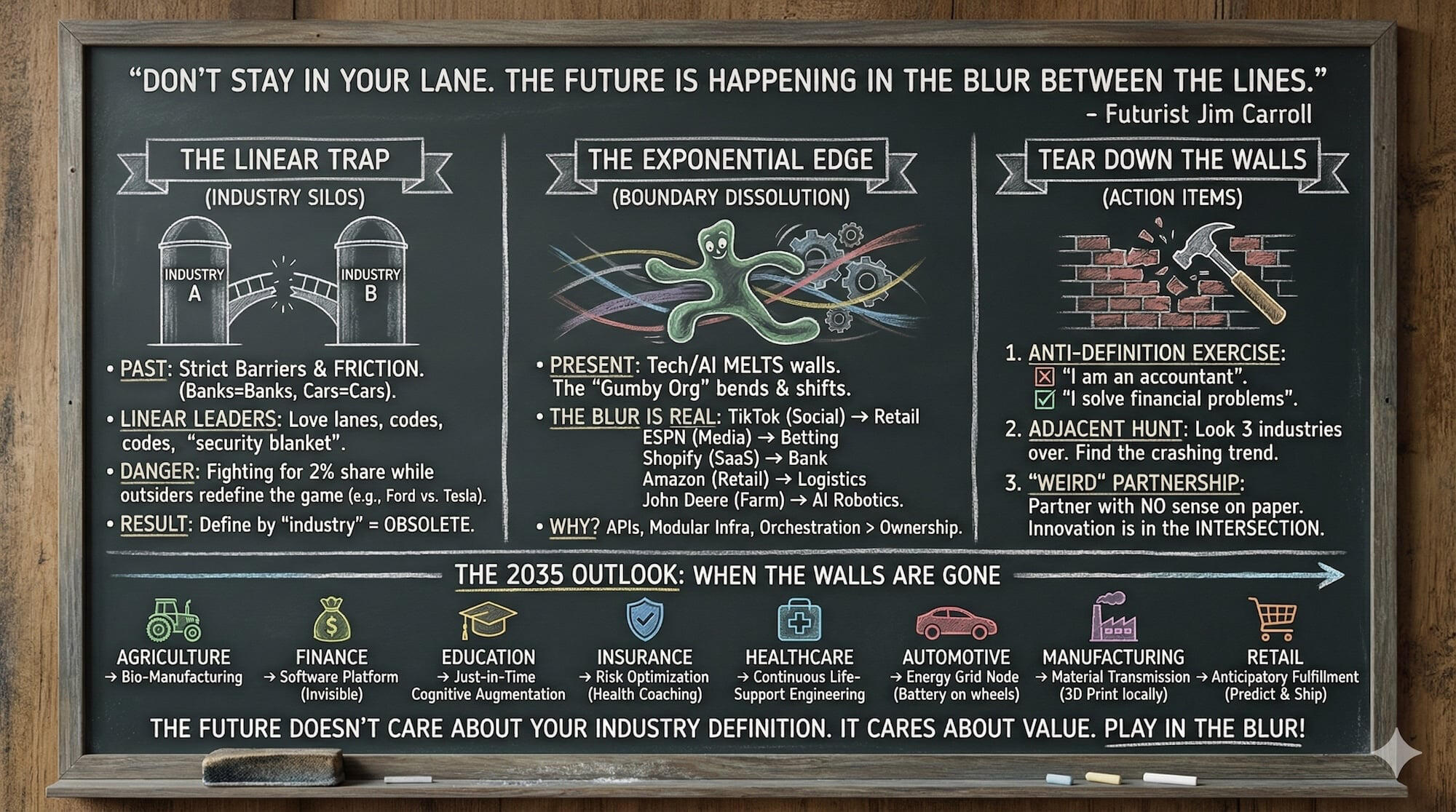 “Hunt in the Blur”: Look for opportunities in the weird intersections others ignore.