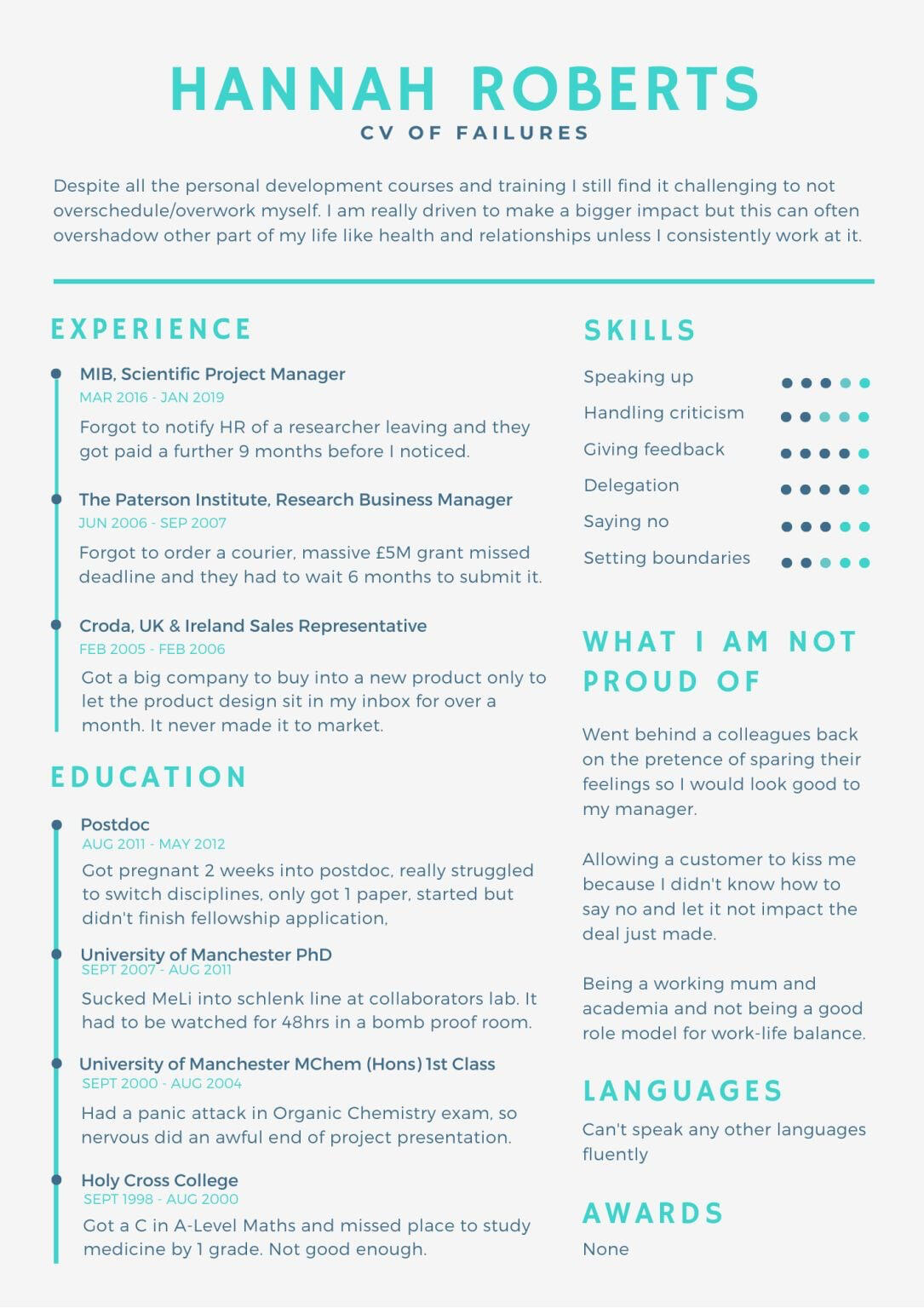 Publish a “Resume of Failure”: Fascinate others by showing your scars, not just your trophies.