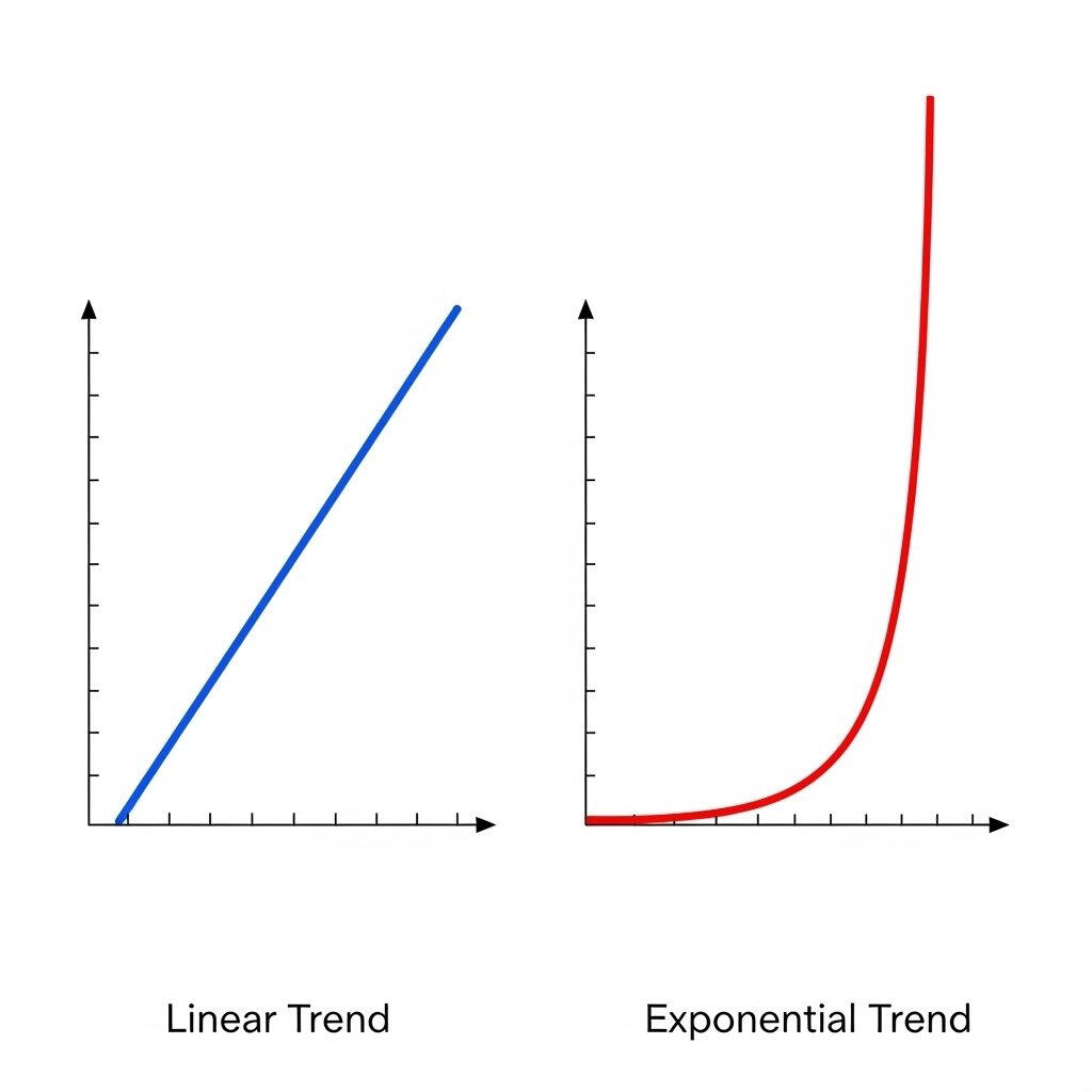 Most people don’t realize what is happening with the exponentiation of trends. And yet, it is and will continue to have a p[profound impact on them. That’s why I’m writing this new 2026 series.The best way to understand what is happening and why it is important is by comparing two graphs. Normal, linear trends, and exponential trends. Notice a difference?