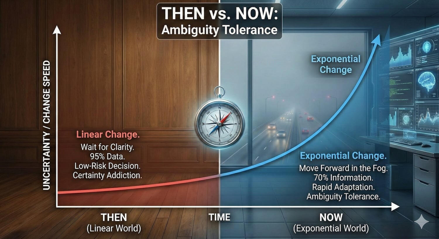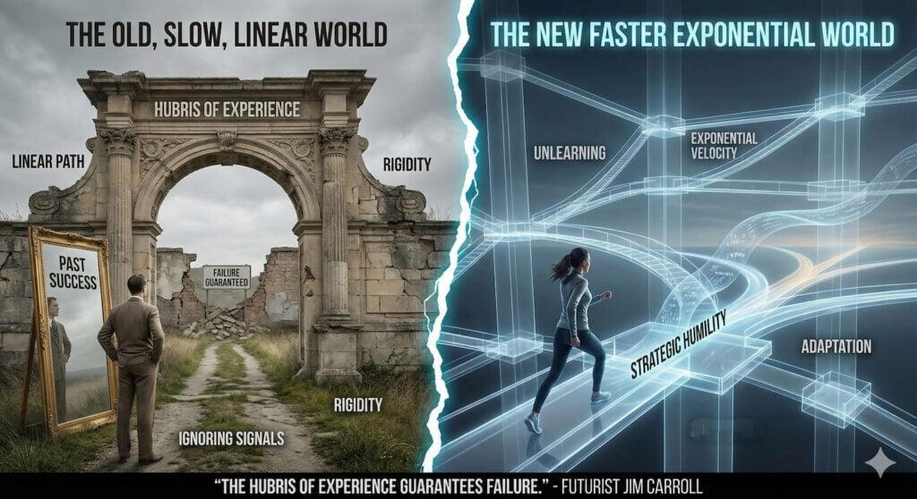 It’s Day 1 of your new path for 2026! 26 days, 26 principles to get you into the exponential mindset.Step 1? Master “Temporal Literacy” – in which you stop judging the speed of your future by the slow pace of your past!The single biggest mistake you can make right now is to believe that you can just keep doing the same old things at the same old deliberate pace that worked for you yesterday.You can’t.Think about it – your past career success, your accumulated knowledge, and your daily routine have all been built on a ‘linear’ world – one that involves a slow, steady and expected rate of change. That’s gone. The world is accelerating exponentially, creating a massive Temporal Lag between the speed you move and the speed the world demands.