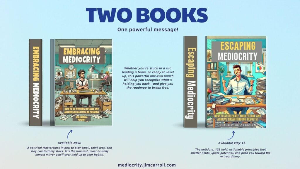 Escape the trap of mediocrity!The acceleration of mediocrity is real, but it is optional. You have the playbook.Now you just need the mindset.For a deeper dive into the strategies that will define the winners of 2026, you need the full manual.Whether you need the antidote to average or a satirical look at what to avoid, grab your copies of “Escaping Mediocrity“ and “Embracing Mediocrity“ today.Get them now at mediocrity.jimcarroll.com